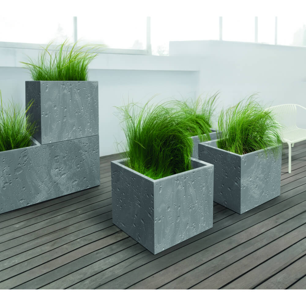 Sierra Square Concrete Effect – сучасний квадратний горщик для квітів з характерною структурою, що імітує бетон.