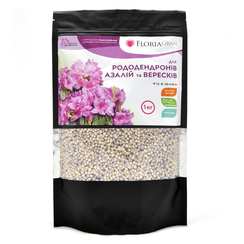 Магазин > Добрива та засоби захисту рослин > Добриво Floria Gran для рододендронів, азалій та вересків гранульоване безхлорне Флорія Гран, 1 кг