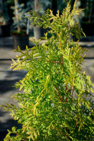Вічнозелене хвойне дерево родини кипарисових конусоподібної форми з щільною кроною, має яскраву, соковите золотисто-жовте забарвлення.