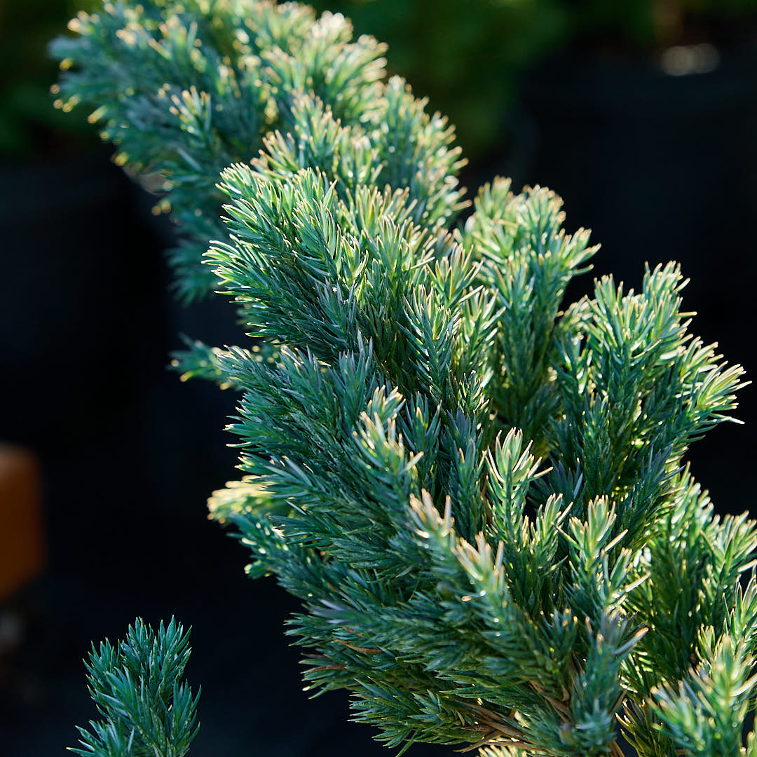 Популярність хвойного вічнозеленого чагарника пояснюється елегантною формою крони та кольором хвої. Косо розташовані гілки зі сріблясто-блакитними кінчиками, що звисають, надихають створення неповторних ландшафтних композицій. Взимку колір хвої навіть інтенсивніший. Річний приріст 10 – 15 см, а в ширину 8-10 см.