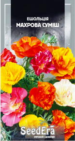Ешольція махрова суміш від бренду Seedera – рослина, яка досягає висоти від 25 до 35 см. Її яскраві квіти відкриваються лише в сонячні дні. Рослина виявляє високу світло- та теплолюбність, але може переносити заморозки до -5°C. Ешольція не вибаглива до ґрунтів і гарно росте навіть на сухих піщаних ділянках. Важливо уникати надмірної вологості та використання свіжих органічних добрив.