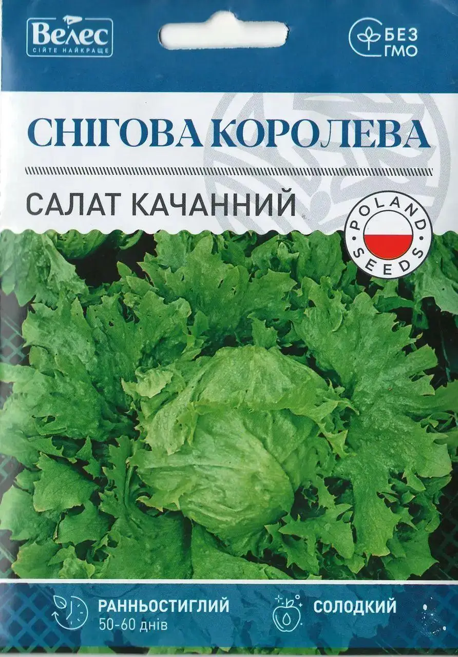 Ранньостиглий качанний сорт типу «Айсберг». Вегетаційний період від сходів до технічної стиглості 50-60 днів. Формує округлі великі качани, середньої щільності, масою до 800г. Листя яскраво-зелене, сильно хвилясті по краю, з хрустку консистенцію, високих смакових якостей. Сорт цінується за швидке формування качанів, стійкість до несправжньої борошнистої роси, високу товарність і врожайність.