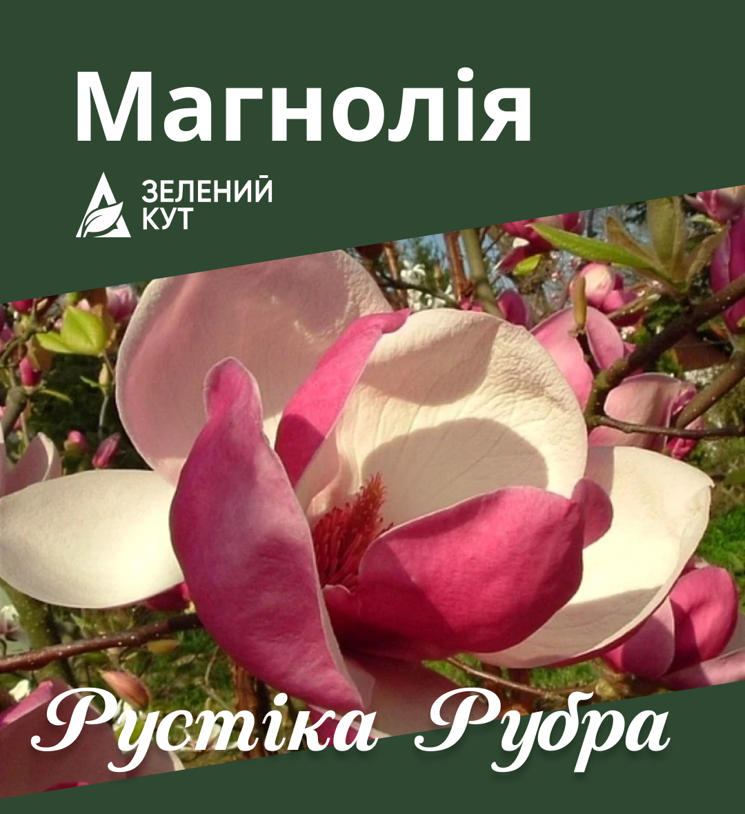 Магнолія Рустика Рубра — це невелике дерево або кущ з яскравим та пишним цвітінням. Ця класична магнолія, ще до появи листя, вкривається великими, пурпурово-рожевими, чашоподібними квітками, що нагадують тюльпани з білою серцевиною. Стійка та невибаглива, вона добре ростиме на будь-якому, добре дренованому ґрунті, окрім надто вапняного, та у захищеному від холодних вітрів місці.