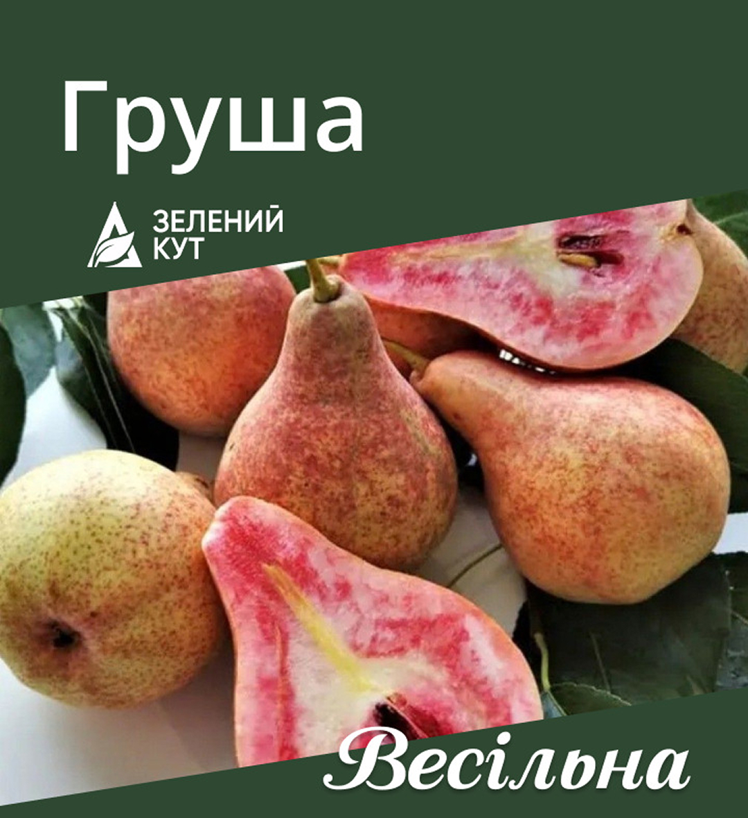 Груша Весільна – це червоном’якотний зимовий сорт української селекції, який радує садівників великими, смачними плодами та високою зимостійкістю. Дерево середньоросле, формує широкопірамідальну крону, яка потребує регулярної обрізки для забезпечення гарного освітлення плодів та підтримки форми. Плоди Весільної великі, мають грушоподібну форму та зеленувато-жовтий колір з легким рум’янцем на сонячній стороні. М’якоть червона, соковита, масляниста, з ніжним солодким смаком, легкою кислинкою та тонким ароматом. Сорт Весільна відрізняється високою зимостійкістю та стійкістю до парші. Плоди дозрівають в кінці вересня – на початку жовтня та добре зберігаються до січня-лютого, не втрачаючи своїх смакових якостей. Груша Весільна чудово підходить для споживання у свіжому вигляді, а також для переробки на варення, компоти, джеми, сухофрукти та інші зимові заготовки. Для отримання рясних врожаїв рекомендується висаджувати грушу Весільна на сонячних, захищених від вітру ділянках з родючим, добре дренованим ґрунтом та забезпечувати регулярний полив в період посухи.